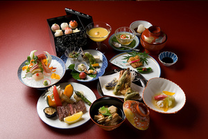 料理長の目利きで日本各地より取り寄せた最高の食材を使った、特別な会席コースです。
