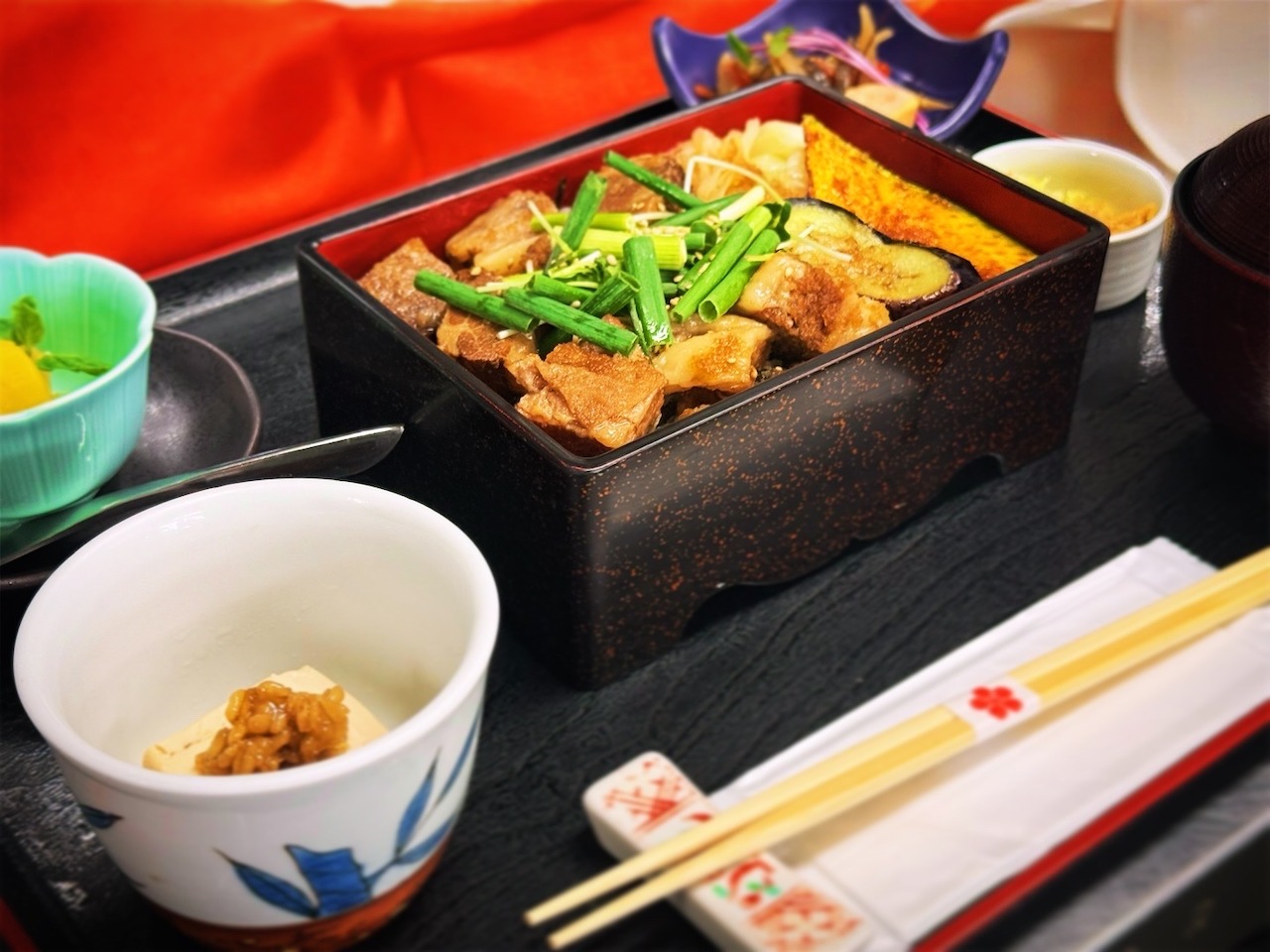 特製のおろしダレと炙り焼きした牛カルビのお重です。